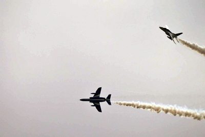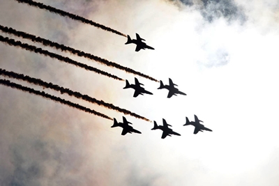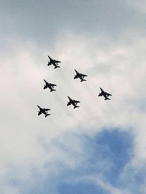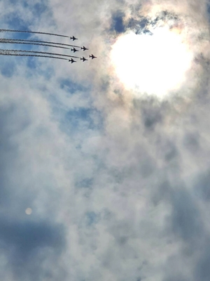 川崎市市政100周年を記念して、ブルーインパルスが展示飛行した。
