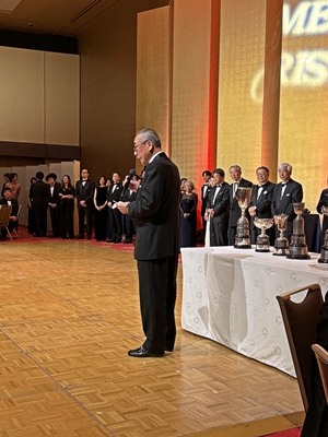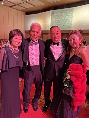 東京ローン Xmasパーティー 12月の第1土曜日は、東京ローンのXmasパーティー。 男性はブラックタイ、女性はロングドレスの公式のパーティーだ。 ホテルオークラで催されたが、食事もとても美味しかった。 外人半分、日本人半分の国際的なテニス倶楽部で、中々素敵だ。 ダンスあり、パフォーマンスありで、参加者が全員楽しむこと、交流することを目的に参加する。 大音響の中、ディスコもあり、皆、踊っておおはしゃぎ。 最高だった!
