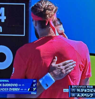 全豪オープン男子準決勝 男子の第1試合ジョコビッチ対ズベレフの試合は、素晴らしい試合であったが、ジョコビッチの足の具合が良くなく、第1セットを6-7で落とした時点で、棄権した。 準々決勝の対アルカラス戦で痛めた足の具合が悪化したとのこと。 またもう1つのシナー対シェルトンの試合は、シナーが7-6. 6-2. 6-2で圧勝した。 シナーの全豪3連覇か? 充実のズベレフの優勝か? 注目したい。