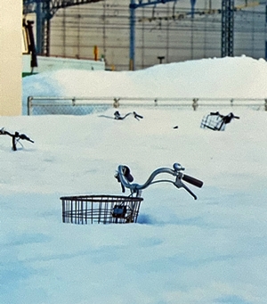 青森駅の駐輪場 これだけ雪が深いと、駐輪場に停めてあった自転車は、取り出せない。 それくらい雪が積もっているのだ。 後2、3日で、暖かくなるそうだが、それまではさらに雪が降るとか….? いやー大変だろうね、雪掻きは。
