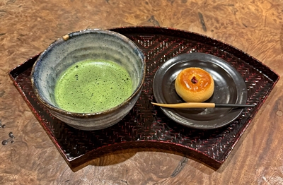 妻が、手作りの茶碗で、抹茶を点ててくれた。