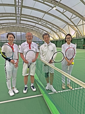 悠遊会 テニス協会をスポンサードをして下さっている企業のトップと、元トッププレーヤーとの交流会である悠遊会。 神宮テニスクラブのインドアコートで、年2回催される。 参加者全員がテニス大好きで、好プレーもあれば珍プレーもあり、和気あいあいの素晴らしいテニスの会である。 素晴らしいラリーの連続、息詰まるプレー、本当に楽しい。 このような親睦会はどんどんやって行くべきだと、つくづく思う。