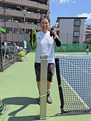 手作りの野菜 土曜クラスの生徒 戸井さんが、どうやらテニスコート近くに畑を借り、野菜を作っているらしい。 今日、本当に嬉しそうに、収穫した野菜を持って来られた。 まるで、苦手のバックハンドを決めたような笑顔で。 本当に嬉しそうな笑顔だ。
