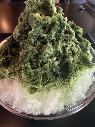 宇治金時に練乳をトッピング。