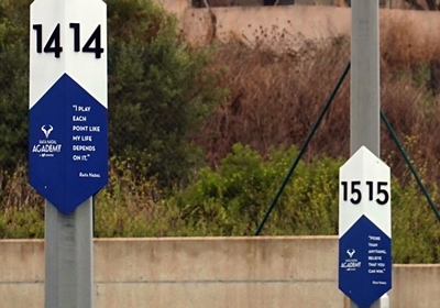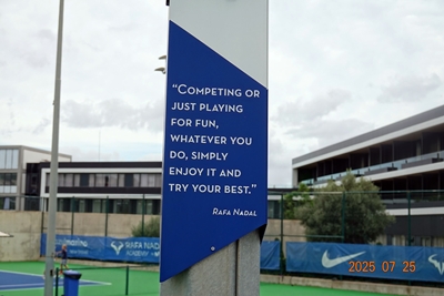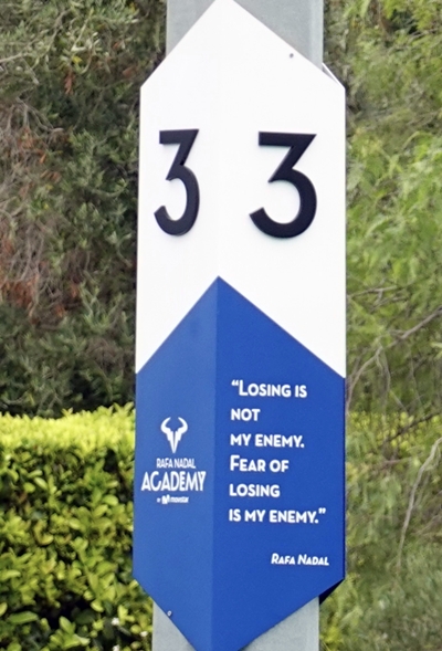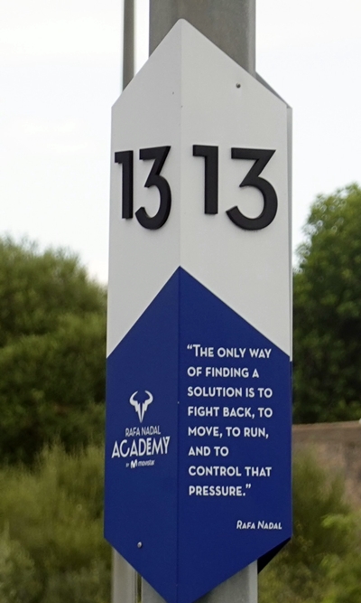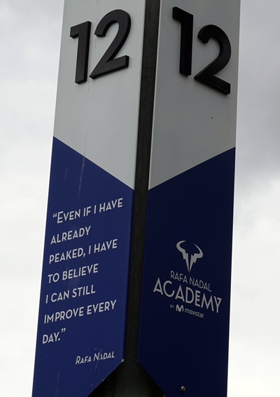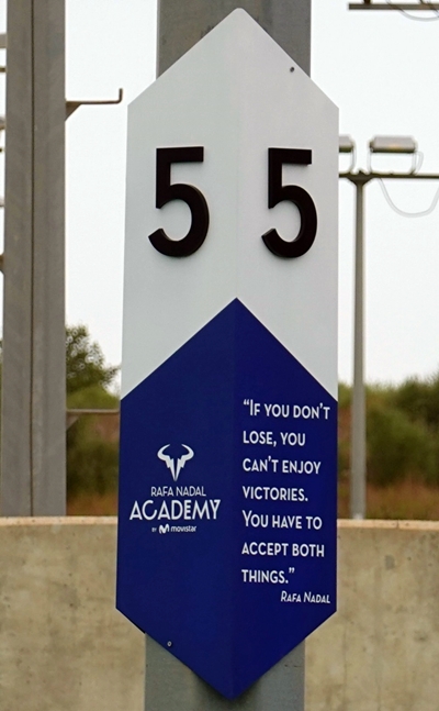スペイン マヨルカ島にあるナダルアカデミーのそれぞれのコートには、苦しく、激しい練習をするにあたっての、ナダルからの言葉が送られている。