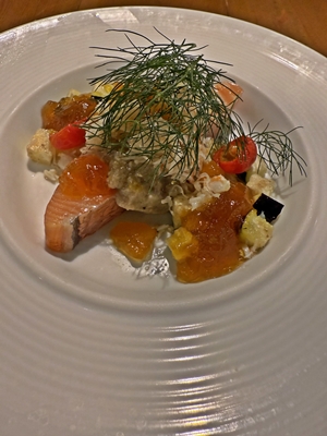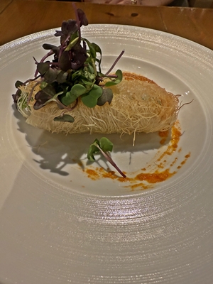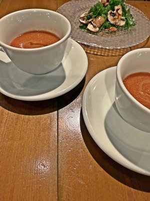 ルレ・サクラ 近所の居心地の良いレストラン、ルレ・サクラ。 今夜、いただいたのは ・モミイカのリエット ・ルッコラ・ケール・マッシュルームのサラダ ・夏野菜のガスパチョ ・タスマニアサーモンとたらば蟹、焼きナスのジュレ添え ・鱧と万願寺とうがらしの春巻き ・小柱、牡蠣、だだちゃ豆のぺぺロンチーノ 白ワインで乾杯!