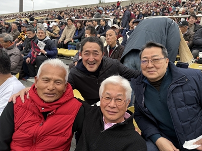 早慶戦を一緒に観戦した同年代の仲間に、また写真には写っていないが、藤原さんには特に感謝したい。
