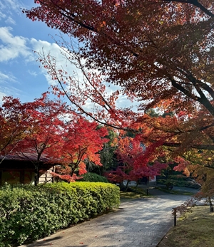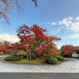 紅葉を求めて 今年の京都は紅葉にはまだ少し早く、また今年は夏が暑く長かった為に、美しい紅葉は期待出来ないと聞いていた。 でもせっかくなので、紅葉を鑑賞出来て、人の少ない場所をいくつか尋ねてみた。 将軍塚青龍殿と曼殊院を訪れた。 “