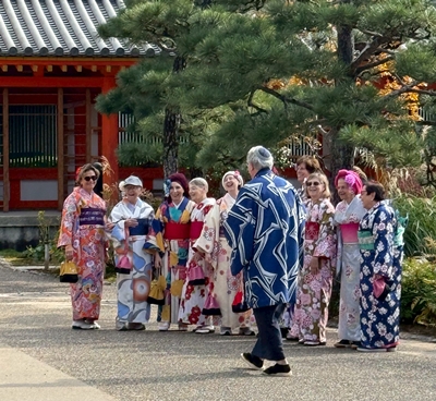 謎の外国人 着物軍団 朝、三十三間堂に行って心を清めてきた。 壮大な1001体の観音立像を観て、感激した。 何年ぶりだろう? そこに謎のスニーカーを履いた、外国人着物軍団。 やはり、ちょっと驚いた! “